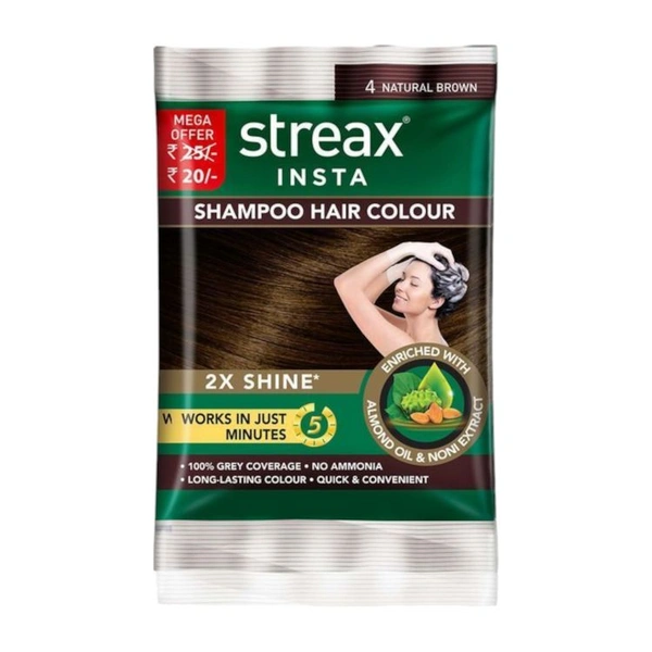 Streax Insta Shampoo Hair Colour - 4 Natural Brown