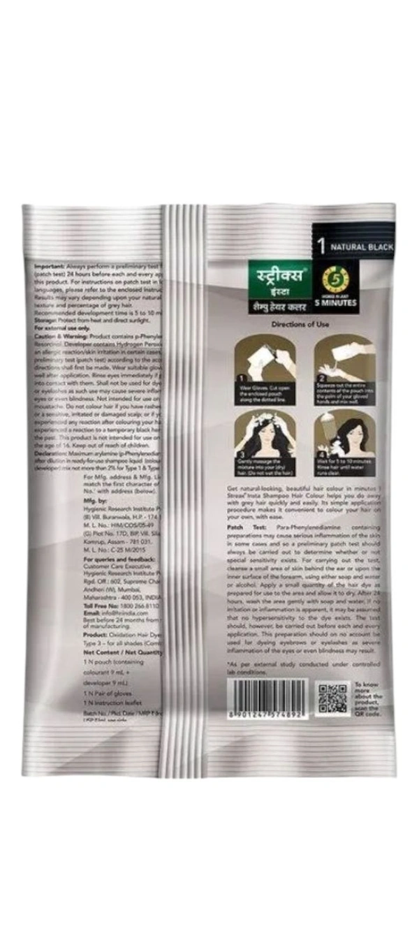 Streax Insta Shampoo Hair Colour - Natural Black